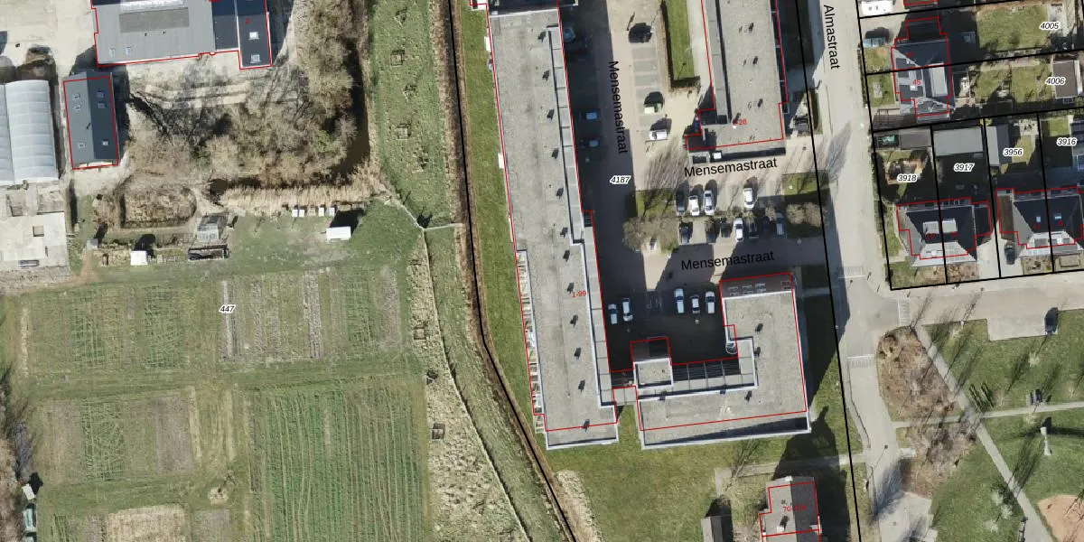 Het perceel waarop Mensemastraat 99 staat heeft een oppervlakte van 1,7 ha. Dit is een zeer groot perceel. De perceeloppervlakte wordt geregistreerd door het Kadaster. Gedetailleerde informatie over de maten van dit perceel kunt u vinden in het rapport Kadastrale kaart met maatvoering van Mensemastraat 99.