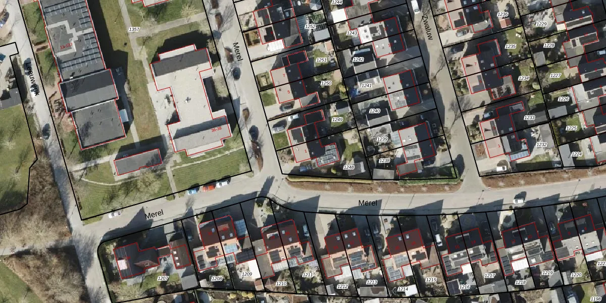 Het perceel waarop Merel 1 staat heeft een oppervlakte van 364 m². Dit is een groot perceel. De perceeloppervlakte wordt geregistreerd door het Kadaster. Gedetailleerde informatie over de maten van dit perceel kunt u vinden in het rapport Kadastrale kaart met maatvoering van Merel 1.