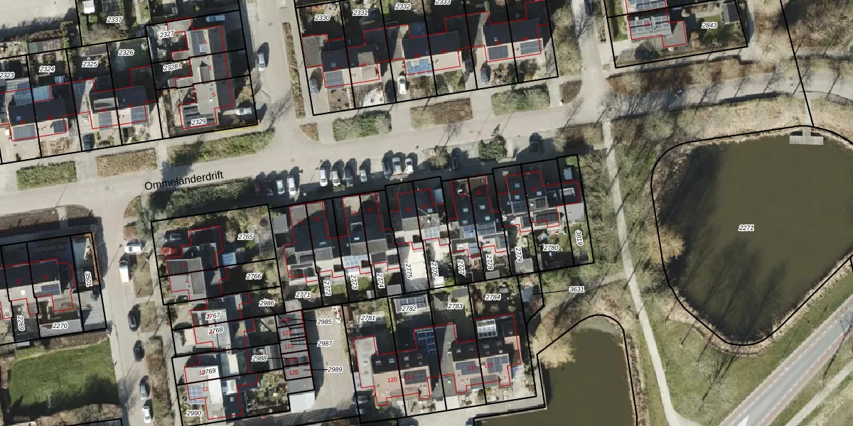 Gebruik de zoekbalk of klik op een perceel voor informatie over de adressen binnen dit perceel.