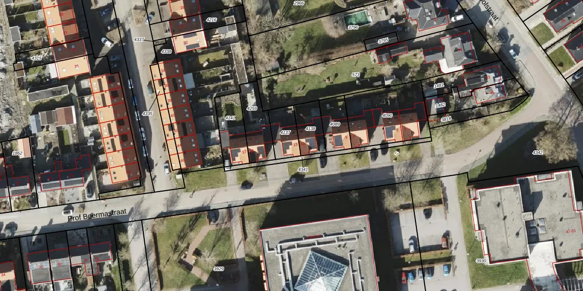 Prof Boermastraat 13 is gelegen op kadastraal perceel BDM00K4137. Deze kadastrale aanduiding is uniek en wordt gebruikt door het Kadaster om eigendomsrechten en andere zakelijke rechten vast te leggen. Het perceel maakt onderdeel uit van de kadastrale gemeente Bedum.
