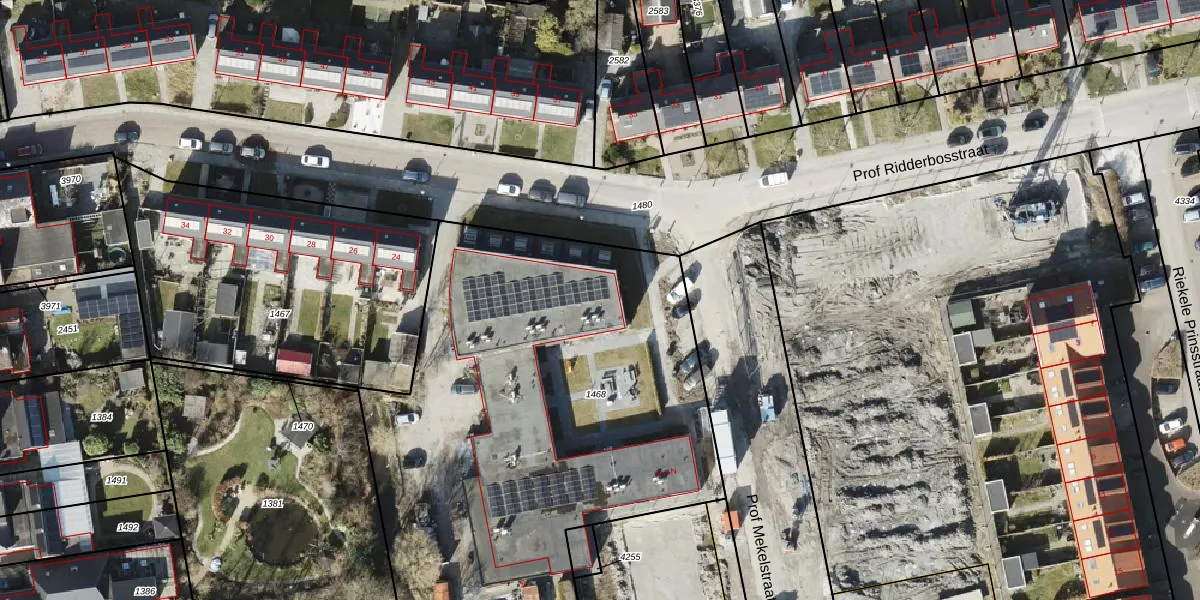 Het perceel waarop Prof Mekelstraat 1-F staat heeft een oppervlakte van 3230 m². Dit is een zeer groot perceel. De perceeloppervlakte wordt geregistreerd door het Kadaster. Gedetailleerde informatie over de maten van dit perceel kunt u vinden in het rapport Kadastrale kaart met maatvoering van Prof Mekelstraat 1-F.