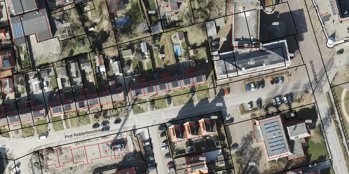 Prof Ridderbosstraat 9 is gelegen op kadastraal perceel BDM00K1410. Deze kadastrale aanduiding is uniek en wordt gebruikt door het Kadaster om eigendomsrechten en andere zakelijke rechten vast te leggen. Het perceel maakt onderdeel uit van de kadastrale gemeente Bedum.