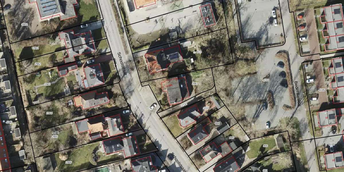 Het perceel waarop Schoolstraat 18-A staat heeft een oppervlakte van 595 m². Dit is een groot perceel. De perceeloppervlakte wordt geregistreerd door het Kadaster. Gedetailleerde informatie over de maten van dit perceel kunt u vinden in het rapport Kadastrale kaart met maatvoering van Schoolstraat 18-A.