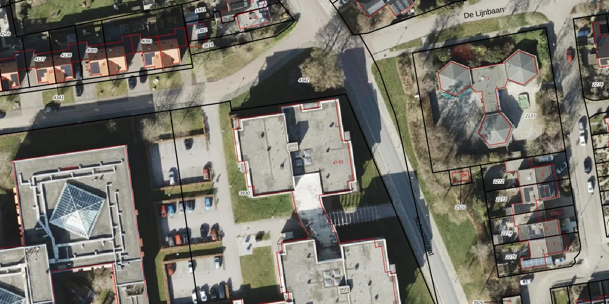 Het perceel waarop Schoolstraat 47-16 staat heeft een oppervlakte van 5690 m². Dit is een zeer groot perceel. De perceeloppervlakte wordt geregistreerd door het Kadaster. Gedetailleerde informatie over de maten van dit perceel kunt u vinden in het rapport Kadastrale kaart met maatvoering van Schoolstraat 47-16.
