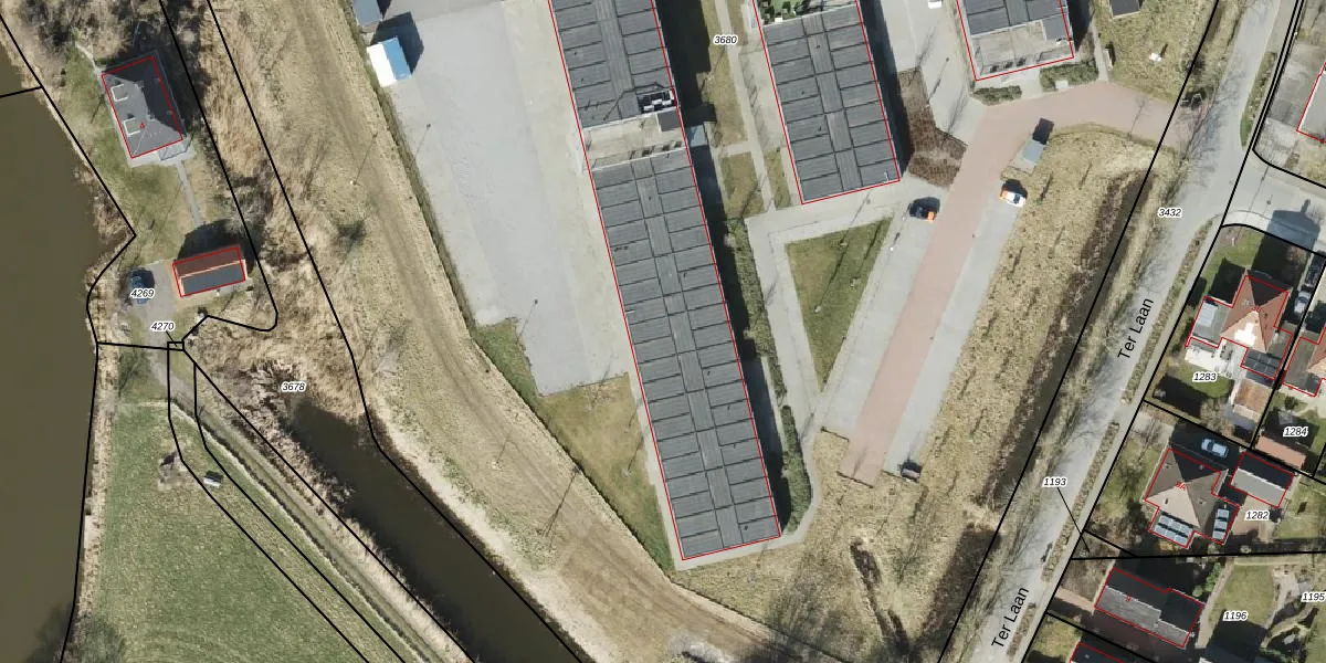Het perceel waarop Ter Laan 8-E-9 staat heeft een oppervlakte van 1,9 ha. Dit is een zeer groot perceel. De perceeloppervlakte wordt geregistreerd door het Kadaster. Gedetailleerde informatie over de maten van dit perceel kunt u vinden in het rapport Kadastrale kaart met maatvoering van Ter Laan 8-E-9.