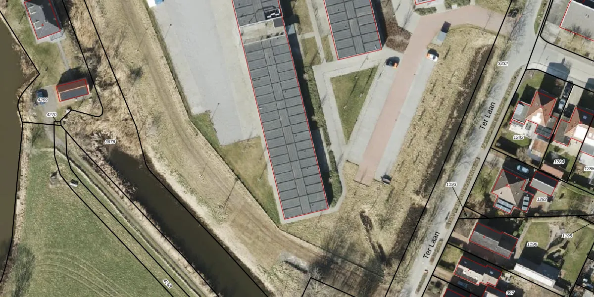 Het perceel waarop Ter Laan 8-E-13 staat heeft een oppervlakte van 1,9 ha. Dit is een zeer groot perceel. De perceeloppervlakte wordt geregistreerd door het Kadaster. Gedetailleerde informatie over de maten van dit perceel kunt u vinden in het rapport Kadastrale kaart met maatvoering van Ter Laan 8-E-13.