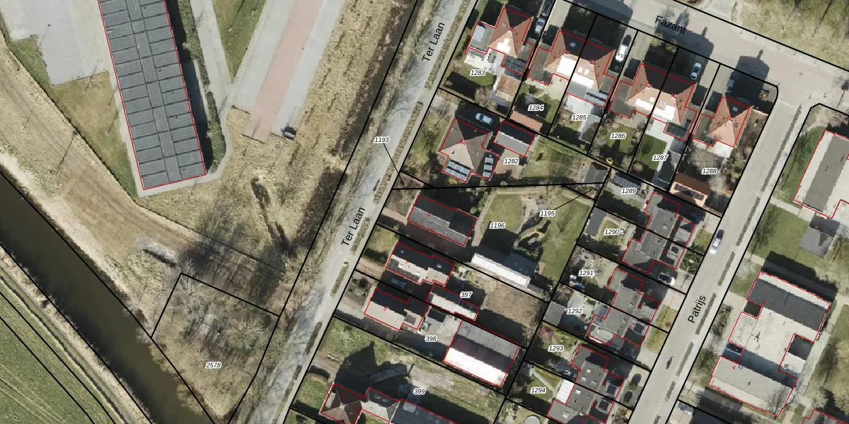 Het perceel waarop Ter Laan 9 staat heeft een oppervlakte van 879 m². Dit is een groot perceel. De perceeloppervlakte wordt geregistreerd door het Kadaster. Gedetailleerde informatie over de maten van dit perceel kunt u vinden in het rapport Kadastrale kaart met maatvoering van Ter Laan 9.