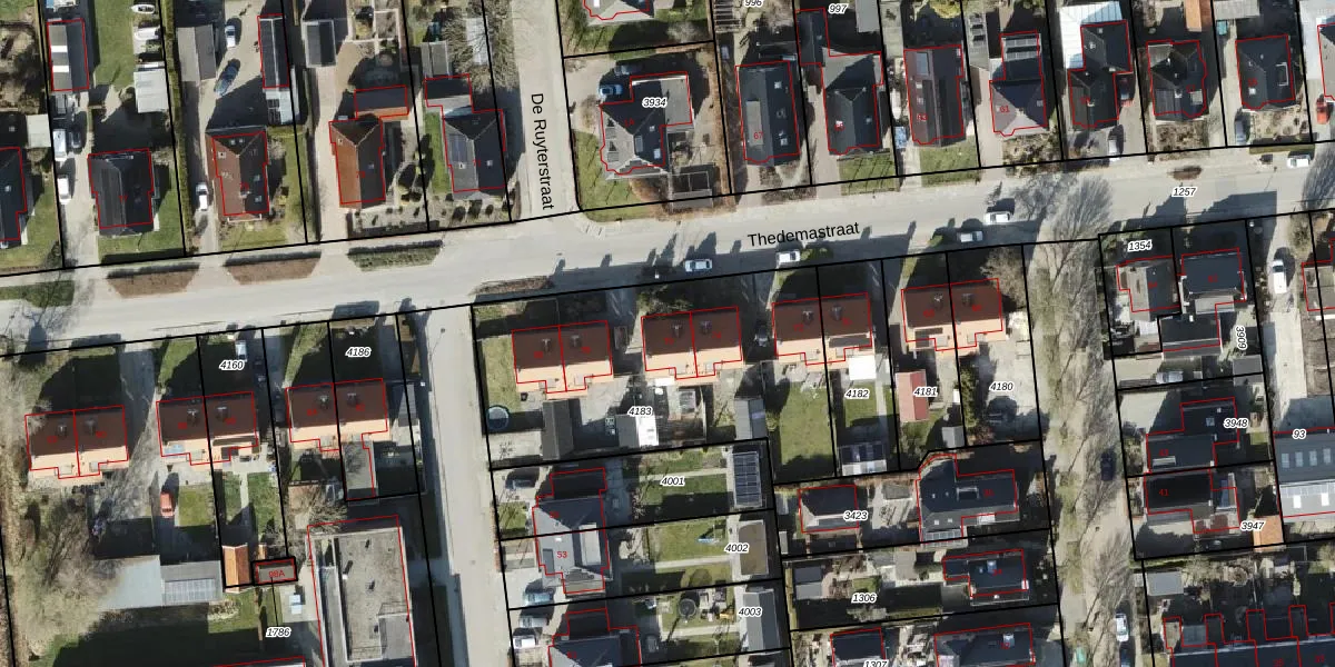 Het perceel waarop Thedemastraat 76 staat heeft een oppervlakte van 1360 m². Dit is een zeer groot perceel. De perceeloppervlakte wordt geregistreerd door het Kadaster. Gedetailleerde informatie over de maten van dit perceel kunt u vinden in het rapport Kadastrale kaart met maatvoering van Thedemastraat 76.