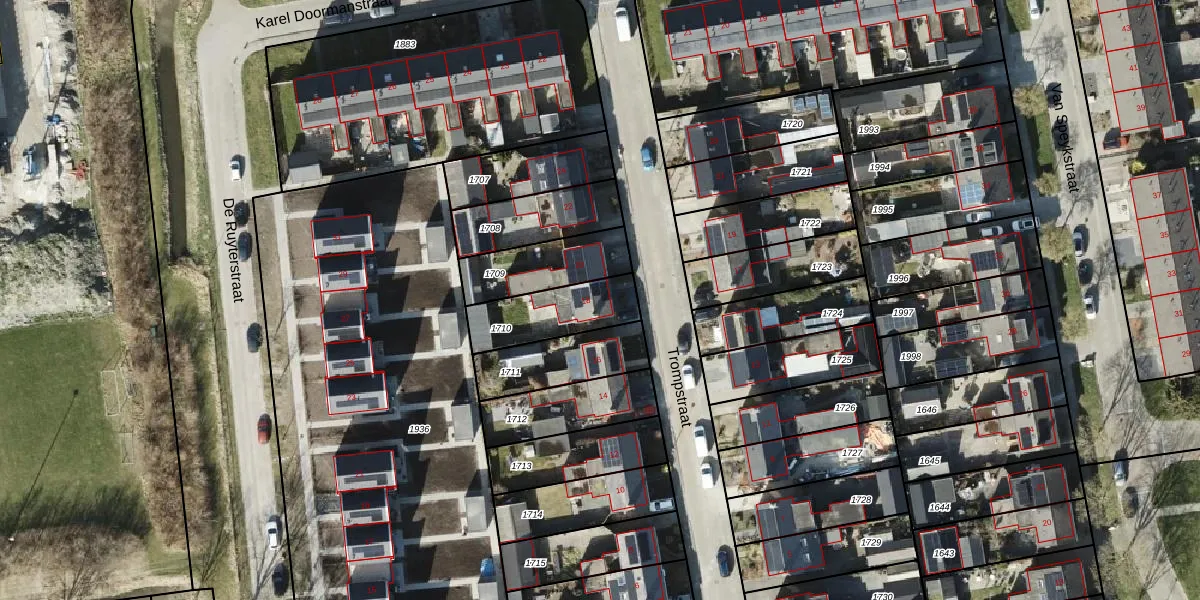 Het perceel waarop Trompstraat 18 staat heeft een oppervlakte van 229 m². Dit is een middelgroot perceel. De perceeloppervlakte wordt geregistreerd door het Kadaster. Gedetailleerde informatie over de maten van dit perceel kunt u vinden in het rapport Kadastrale kaart met maatvoering van Trompstraat 18.
