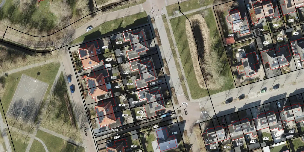 Het perceel waarop Valk 12 staat heeft een oppervlakte van 277 m². Dit is een middelgroot perceel. De perceeloppervlakte wordt geregistreerd door het Kadaster. Gedetailleerde informatie over de maten van dit perceel kunt u vinden in het rapport Kadastrale kaart met maatvoering van Valk 12.