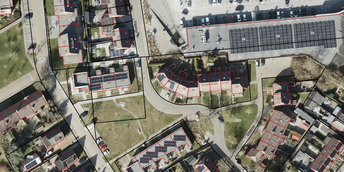 Het perceel waarop Veeno 27 staat heeft een oppervlakte van 1533 m². Dit is een zeer groot perceel. De perceeloppervlakte wordt geregistreerd door het Kadaster. Gedetailleerde informatie over de maten van dit perceel kunt u vinden in het rapport Kadastrale kaart met maatvoering van Veeno 27.