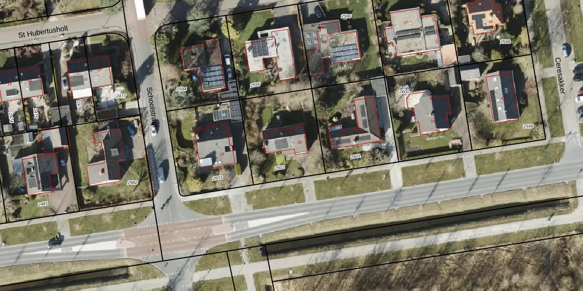 Gebruik de zoekbalk of klik op een perceel voor informatie over de adressen binnen dit perceel.