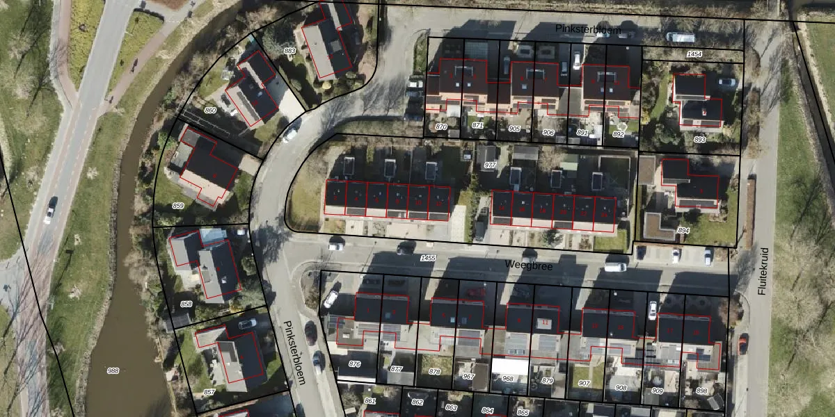 Het perceel waarop Weegbree 10 staat heeft een oppervlakte van 2018 m². Dit is een zeer groot perceel. De perceeloppervlakte wordt geregistreerd door het Kadaster. Gedetailleerde informatie over de maten van dit perceel kunt u vinden in het rapport Kadastrale kaart met maatvoering van Weegbree 10.