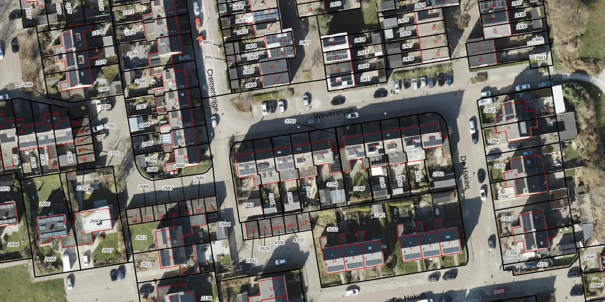 Het perceel waarop Weversrijge 7 staat heeft een oppervlakte van 166 m². Dit is een middelgroot perceel. De perceeloppervlakte wordt geregistreerd door het Kadaster. Gedetailleerde informatie over de maten van dit perceel kunt u vinden in het rapport Kadastrale kaart met maatvoering van Weversrijge 7.
