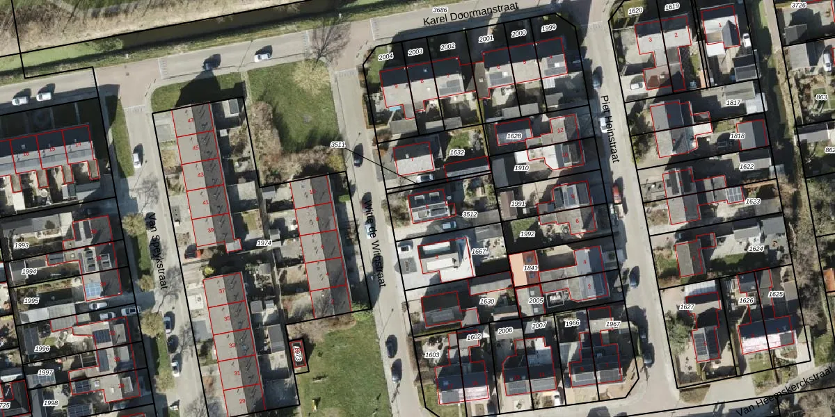 Gebruik de zoekbalk of klik op een perceel voor informatie over de adressen binnen dit perceel.