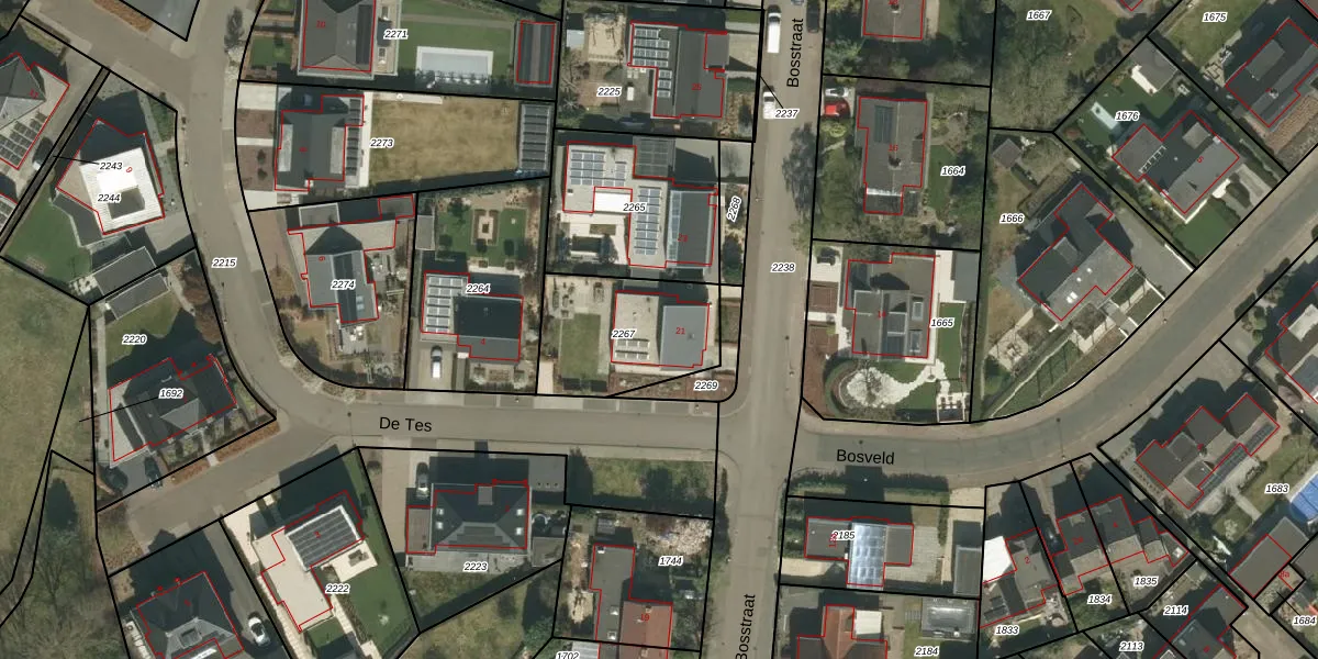 Bosstraat 21 is gelegen op kadastraal perceel BDN00B2267. Deze kadastrale aanduiding is uniek en wordt gebruikt door het Kadaster om eigendomsrechten en andere zakelijke rechten vast te leggen. Het perceel maakt onderdeel uit van de kadastrale gemeente Beegden.