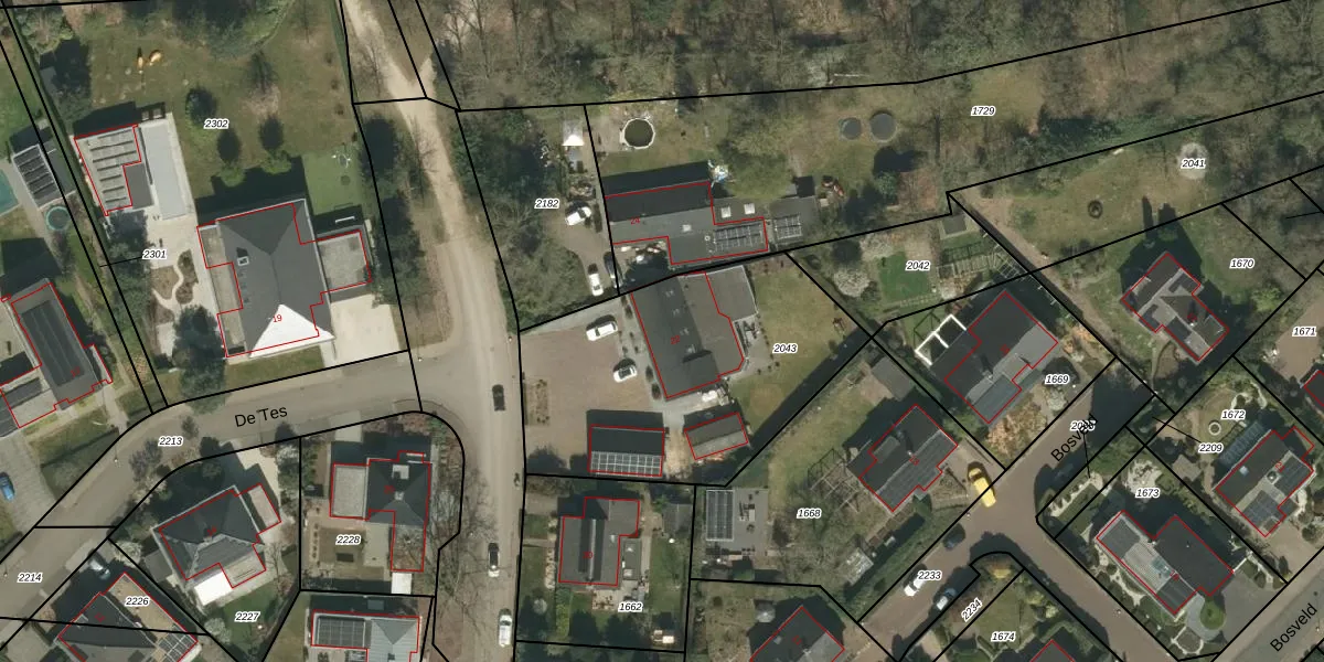 Het perceel waarop Bosstraat 22 staat heeft een oppervlakte van 1325 m². Dit is een zeer groot perceel. De perceeloppervlakte wordt geregistreerd door het Kadaster. Gedetailleerde informatie over de maten van dit perceel kunt u vinden in het rapport Kadastrale kaart met maatvoering van Bosstraat 22.
