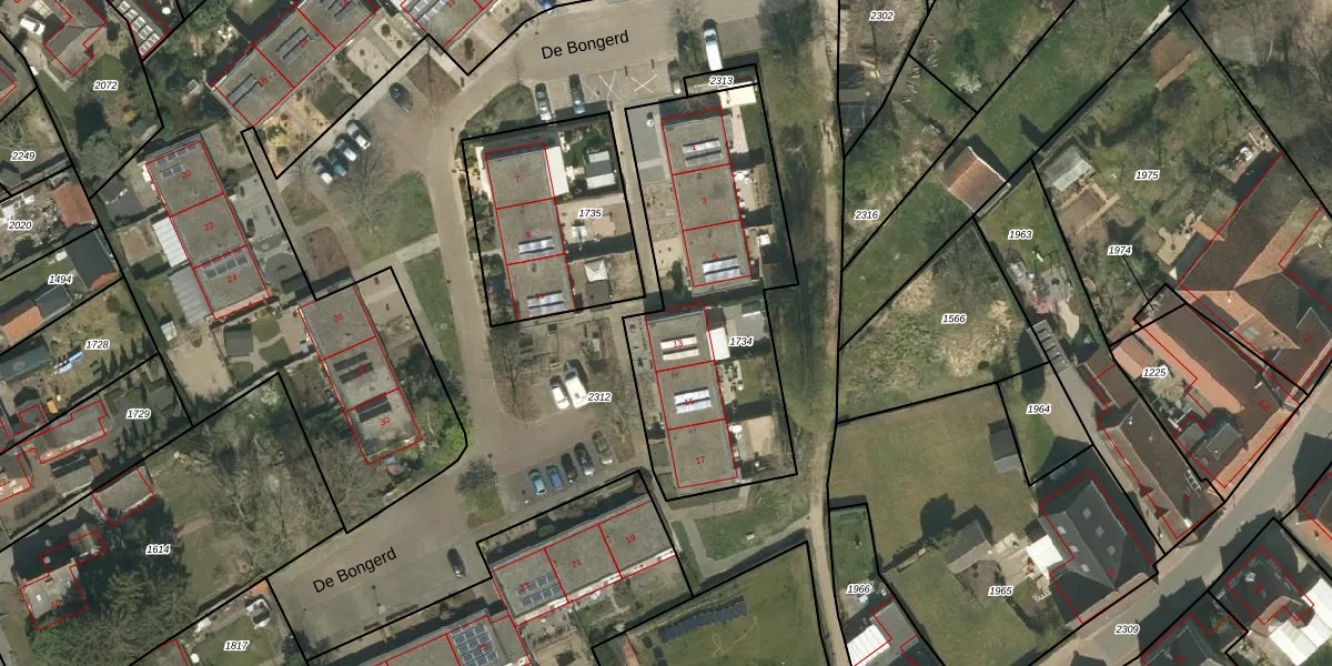 De Bongerd 13 is gelegen op kadastraal perceel BDN00D1734. Deze kadastrale aanduiding is uniek en wordt gebruikt door het Kadaster om eigendomsrechten en andere zakelijke rechten vast te leggen. Het perceel maakt onderdeel uit van de kadastrale gemeente Beegden.