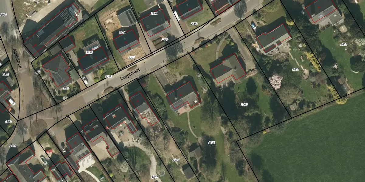 Het perceel waarop Dorpstraat 30 staat heeft een oppervlakte van 2840 m². Dit is een zeer groot perceel. De perceeloppervlakte wordt geregistreerd door het Kadaster. Gedetailleerde informatie over de maten van dit perceel kunt u vinden in het rapport Kadastrale kaart met maatvoering van Dorpstraat 30.