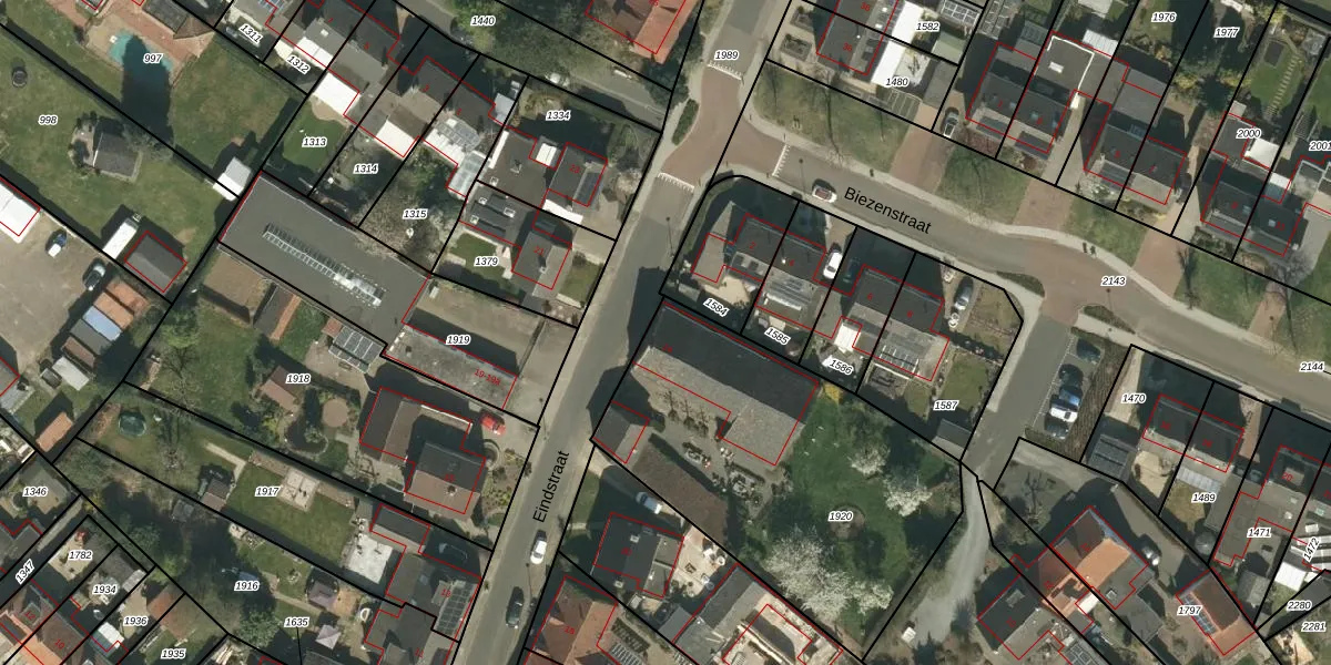 Het perceel waarop Eindstraat 24 staat heeft een oppervlakte van 1570 m². Dit is een zeer groot perceel. De perceeloppervlakte wordt geregistreerd door het Kadaster. Gedetailleerde informatie over de maten van dit perceel kunt u vinden in het rapport Kadastrale kaart met maatvoering van Eindstraat 24.