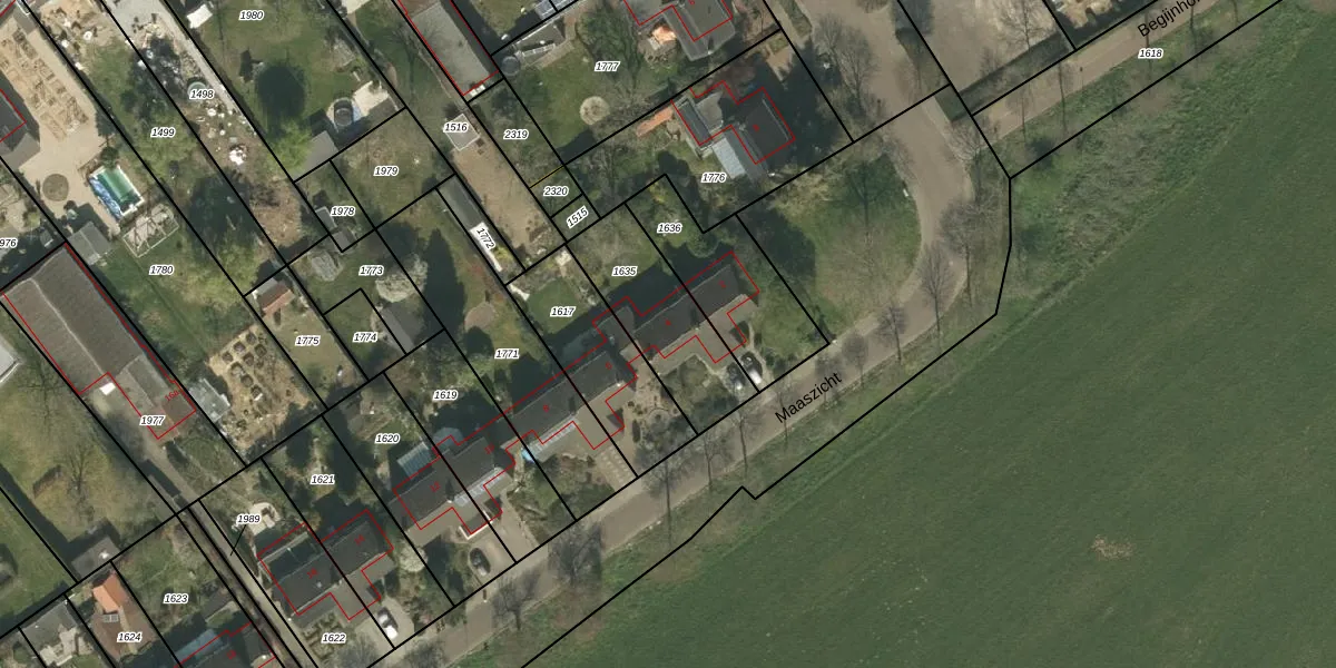 Maaszicht 4 is gelegen op kadastraal perceel BDN00D1635. Deze kadastrale aanduiding is uniek en wordt gebruikt door het Kadaster om eigendomsrechten en andere zakelijke rechten vast te leggen. Het perceel maakt onderdeel uit van de kadastrale gemeente Beegden.