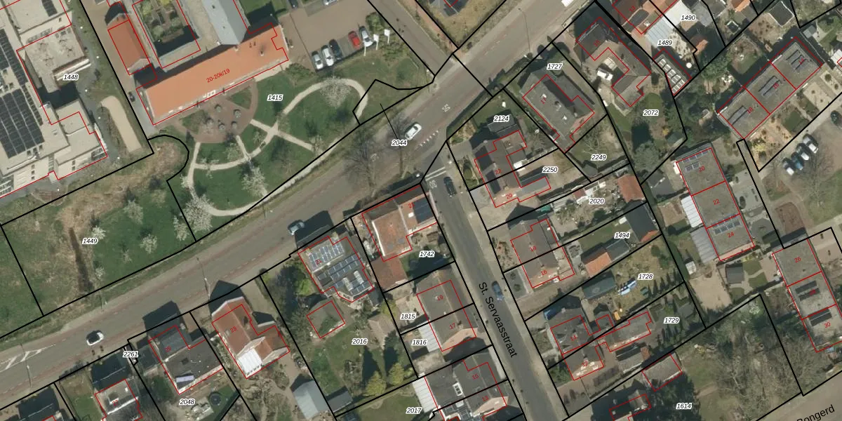 Het perceel waarop St. Servaasstraat 21 staat heeft een oppervlakte van 360 m². Dit is een groot perceel. De perceeloppervlakte wordt geregistreerd door het Kadaster. Gedetailleerde informatie over de maten van dit perceel kunt u vinden in het rapport Kadastrale kaart met maatvoering van St. Servaasstraat 21.