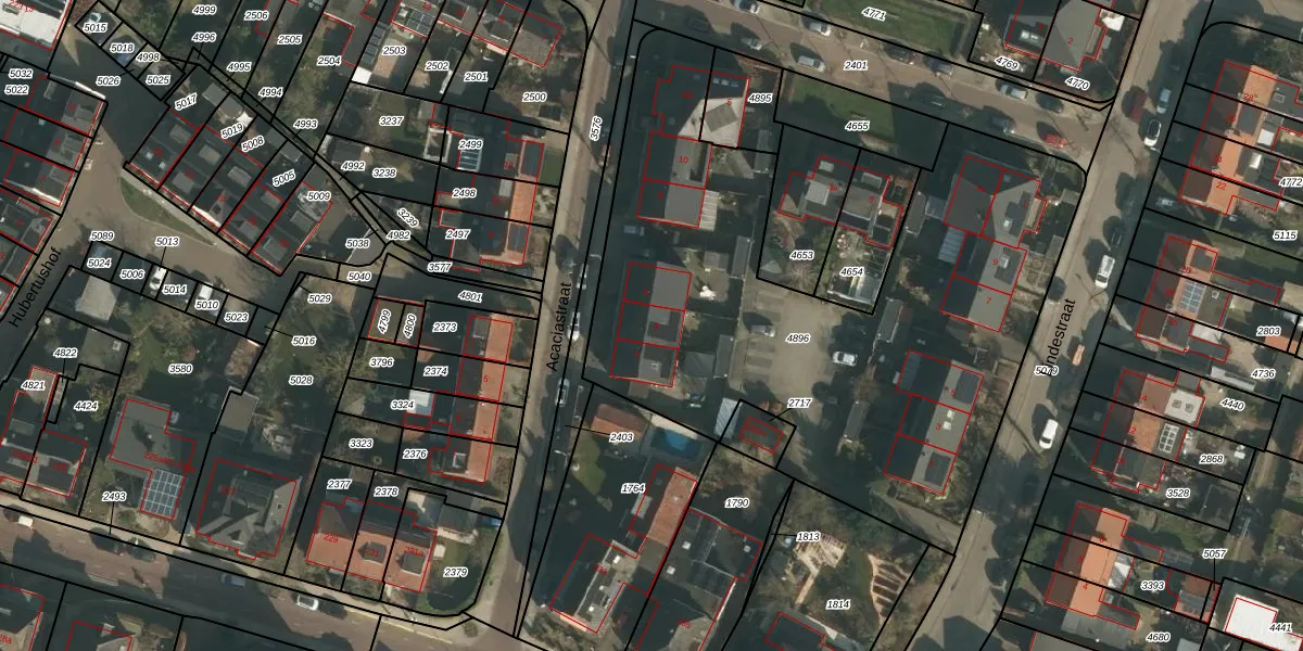 Het perceel waarop Acaciastraat 4 staat heeft een oppervlakte van 2981 m². Dit is een zeer groot perceel. De perceeloppervlakte wordt geregistreerd door het Kadaster. Gedetailleerde informatie over de maten van dit perceel kunt u vinden in het rapport Kadastrale kaart met maatvoering van Acaciastraat 4.