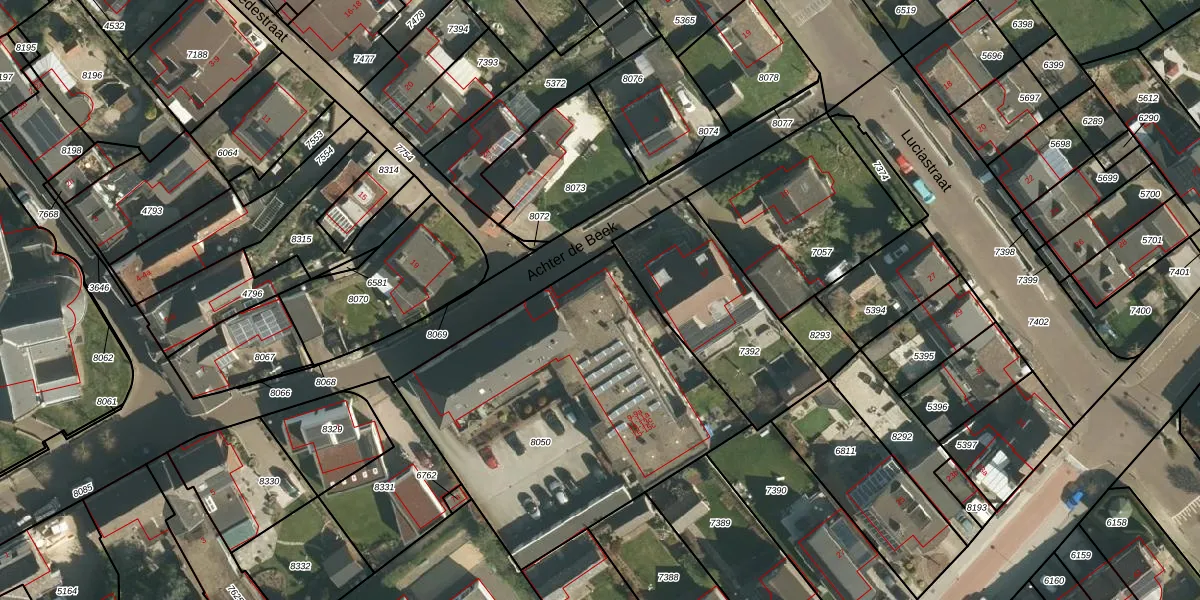 Achter de Beek 13-a is gelegen op kadastraal perceel BEE02B8050. Deze kadastrale aanduiding is uniek en wordt gebruikt door het Kadaster om eigendomsrechten en andere zakelijke rechten vast te leggen. Het perceel maakt onderdeel uit van de kadastrale gemeente Beek.