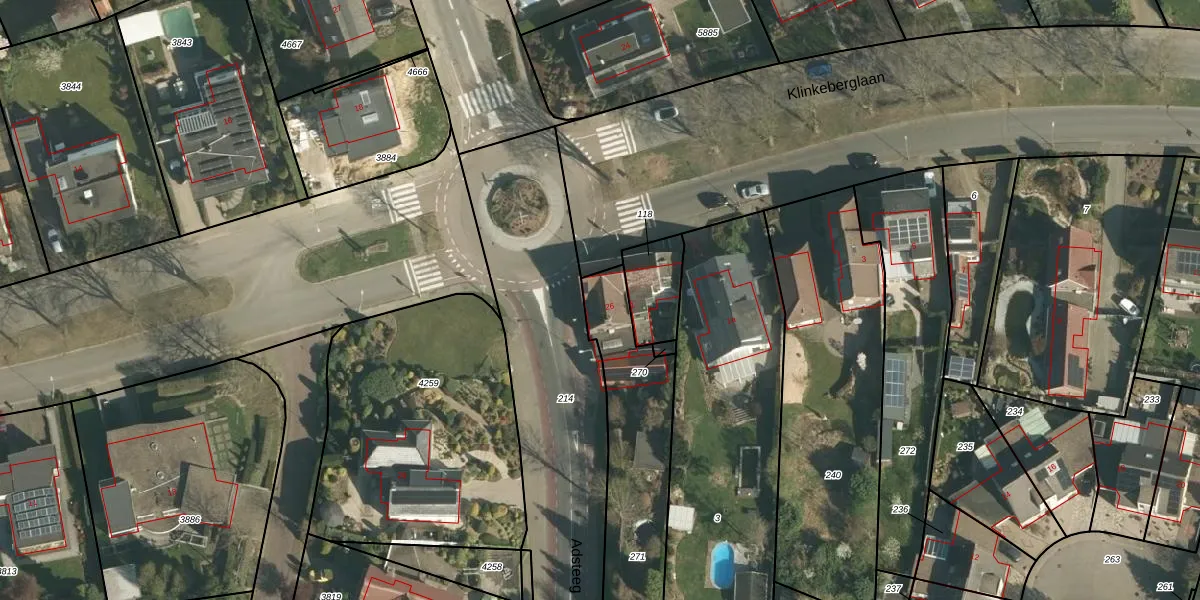 Gebruik de zoekbalk of klik op een perceel voor informatie over de adressen binnen dit perceel.