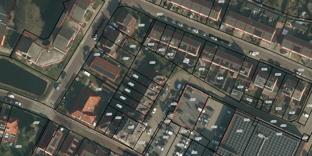 Gebruik de zoekbalk of klik op een perceel voor informatie over de adressen binnen dit perceel.