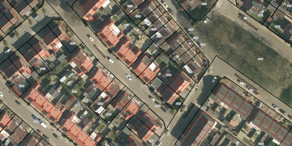 Het perceel waarop Annastraat 48 staat heeft een oppervlakte van 571 m². Dit is een groot perceel. De perceeloppervlakte wordt geregistreerd door het Kadaster. Gedetailleerde informatie over de maten van dit perceel kunt u vinden in het rapport Kadastrale kaart met maatvoering van Annastraat 48.