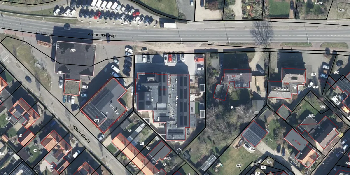 Het perceel waarop Arnhemseweg 11-m staat heeft een oppervlakte van 1900 m². Dit is een zeer groot perceel. De perceeloppervlakte wordt geregistreerd door het Kadaster. Gedetailleerde informatie over de maten van dit perceel kunt u vinden in het rapport Kadastrale kaart met maatvoering van Arnhemseweg 11-m.
