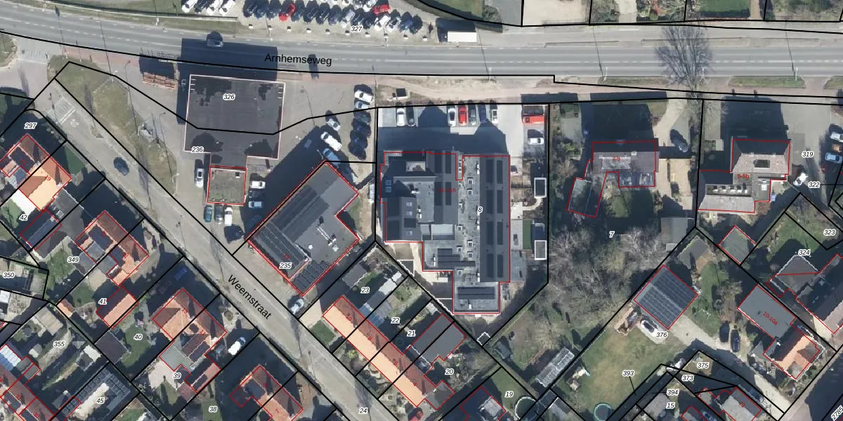 Arnhemseweg 11-n is gelegen op kadastraal perceel BER02H8. Deze kadastrale aanduiding is uniek en wordt gebruikt door het Kadaster om eigendomsrechten en andere zakelijke rechten vast te leggen. Het perceel maakt onderdeel uit van de kadastrale gemeente Bergh.