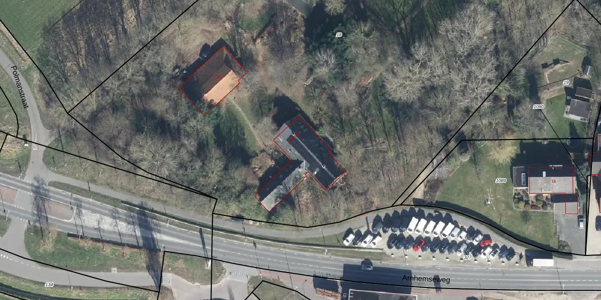 Het perceel waarop Arnhemseweg 20-d staat heeft een oppervlakte van 1,2 ha. Dit is een zeer groot perceel. De perceeloppervlakte wordt geregistreerd door het Kadaster. Gedetailleerde informatie over de maten van dit perceel kunt u vinden in het rapport Kadastrale kaart met maatvoering van Arnhemseweg 20-d.