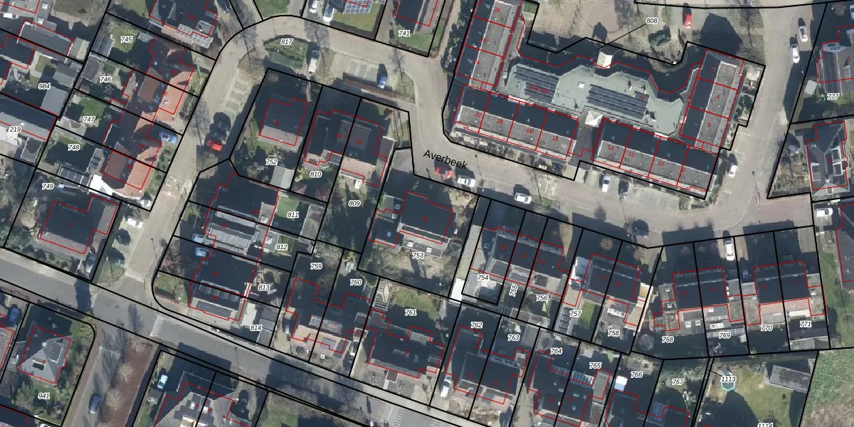 Het perceel waarop Averbeek 25 staat heeft een oppervlakte van 580 m². Dit is een groot perceel. De perceeloppervlakte wordt geregistreerd door het Kadaster. Gedetailleerde informatie over de maten van dit perceel kunt u vinden in het rapport Kadastrale kaart met maatvoering van Averbeek 25.