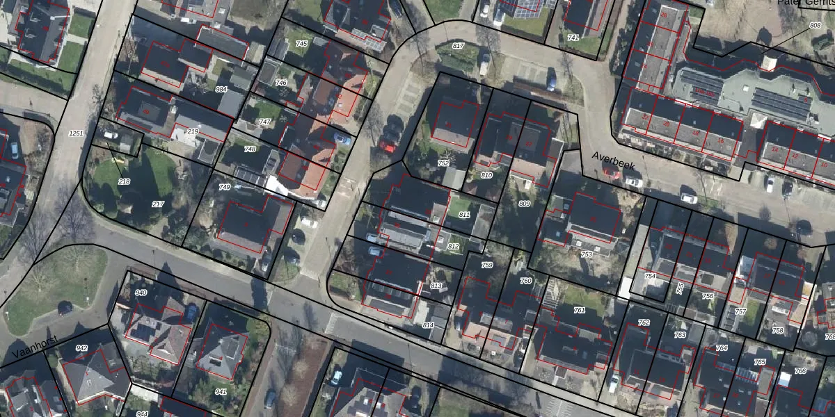 Het perceel waarop Averbeek 33 staat heeft een oppervlakte van 295 m². Dit is een middelgroot perceel. De perceeloppervlakte wordt geregistreerd door het Kadaster. Gedetailleerde informatie over de maten van dit perceel kunt u vinden in het rapport Kadastrale kaart met maatvoering van Averbeek 33.