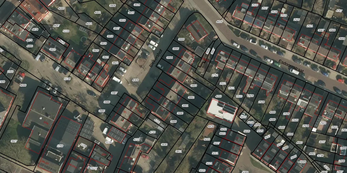 Gebruik de zoekbalk of klik op een perceel voor informatie over de adressen binnen dit perceel.