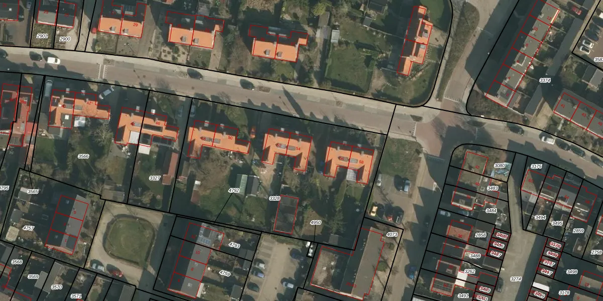 Het perceel waarop Bongerdstraat 54 staat heeft een oppervlakte van 2525 m². Dit is een zeer groot perceel. De perceeloppervlakte wordt geregistreerd door het Kadaster. Gedetailleerde informatie over de maten van dit perceel kunt u vinden in het rapport Kadastrale kaart met maatvoering van Bongerdstraat 54.
