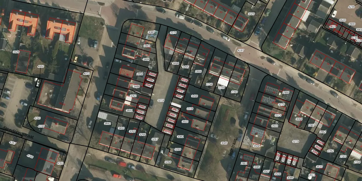 Gebruik de zoekbalk of klik op een perceel voor informatie over de adressen binnen dit perceel.