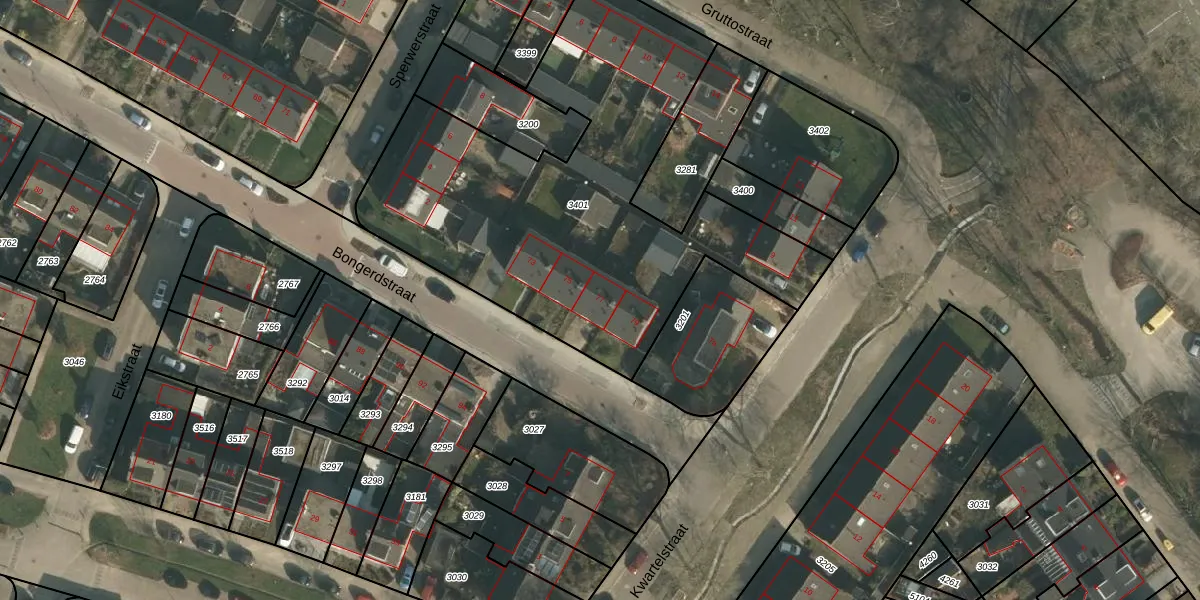 Het perceel waarop Bongerdstraat 77 staat heeft een oppervlakte van 2440 m². Dit is een zeer groot perceel. De perceeloppervlakte wordt geregistreerd door het Kadaster. Gedetailleerde informatie over de maten van dit perceel kunt u vinden in het rapport Kadastrale kaart met maatvoering van Bongerdstraat 77.
