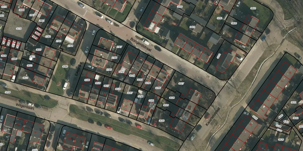 Gebruik de zoekbalk of klik op een perceel voor informatie over de adressen binnen dit perceel.