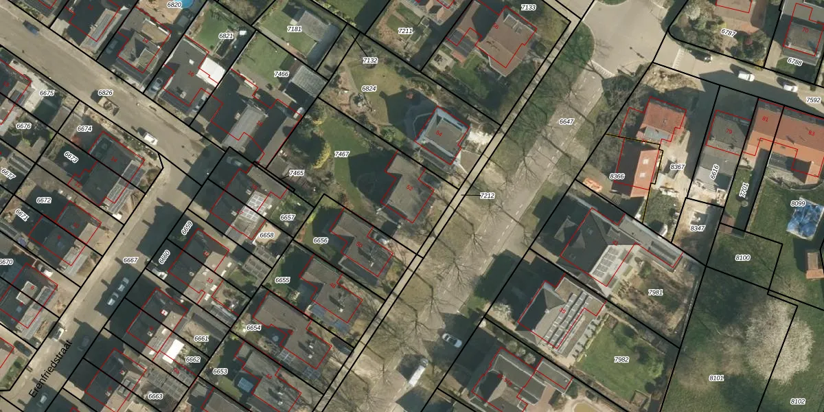 Gebruik de zoekbalk of klik op een perceel voor informatie over de adressen binnen dit perceel.