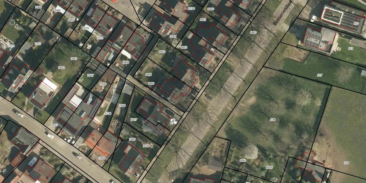 Bosserveldlaan 60 is gelegen op kadastraal perceel BEE02B6854. Deze kadastrale aanduiding is uniek en wordt gebruikt door het Kadaster om eigendomsrechten en andere zakelijke rechten vast te leggen. Het perceel maakt onderdeel uit van de kadastrale gemeente Beek.