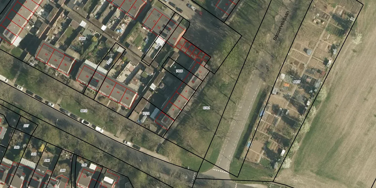 Het perceel waarop Bosserveldlaan 8 staat heeft een oppervlakte van 5781 m². Dit is een zeer groot perceel. De perceeloppervlakte wordt geregistreerd door het Kadaster. Gedetailleerde informatie over de maten van dit perceel kunt u vinden in het rapport Kadastrale kaart met maatvoering van Bosserveldlaan 8.