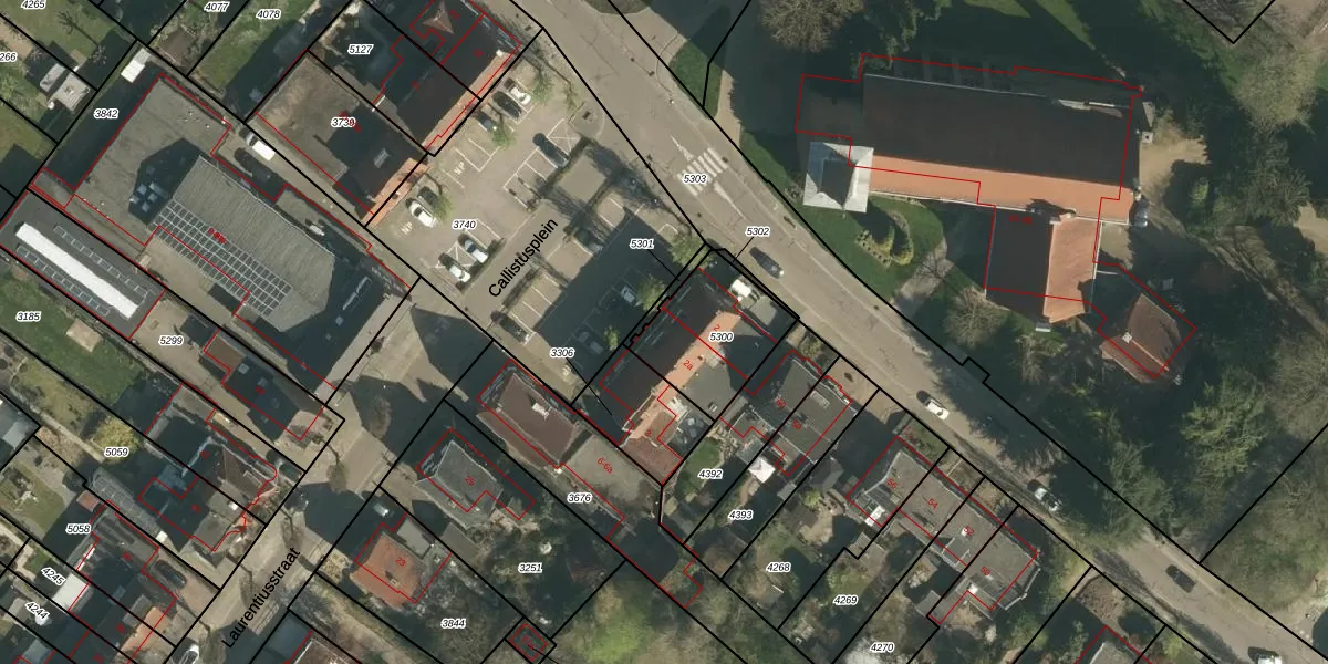 Het perceel waarop Callistusplein 2-a staat heeft een oppervlakte van 337 m². Dit is een groot perceel. De perceeloppervlakte wordt geregistreerd door het Kadaster. Gedetailleerde informatie over de maten van dit perceel kunt u vinden in het rapport Kadastrale kaart met maatvoering van Callistusplein 2-a.