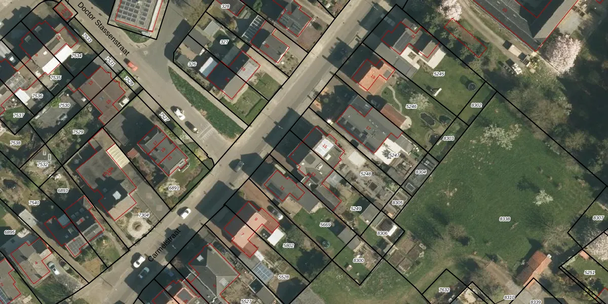 Carmelstraat 13 is gelegen op kadastraal perceel BEE02B5249. Deze kadastrale aanduiding is uniek en wordt gebruikt door het Kadaster om eigendomsrechten en andere zakelijke rechten vast te leggen. Het perceel maakt onderdeel uit van de kadastrale gemeente Beek.