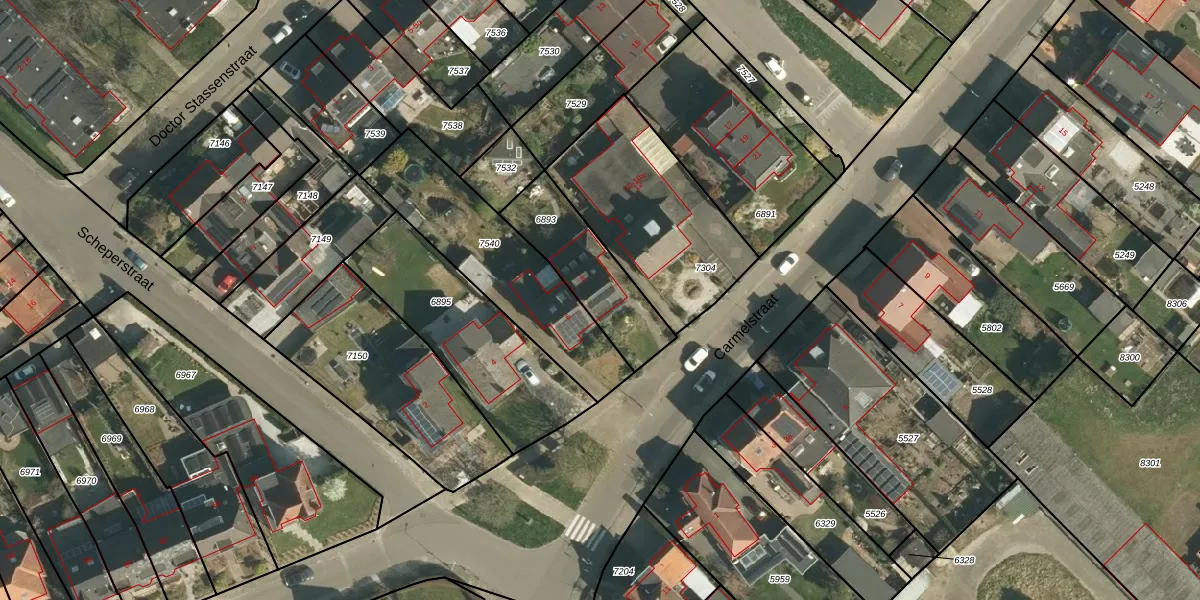 Carmelstraat 8 is gelegen op kadastraal perceel BEE02B6893. Deze kadastrale aanduiding is uniek en wordt gebruikt door het Kadaster om eigendomsrechten en andere zakelijke rechten vast te leggen. Het perceel maakt onderdeel uit van de kadastrale gemeente Beek.