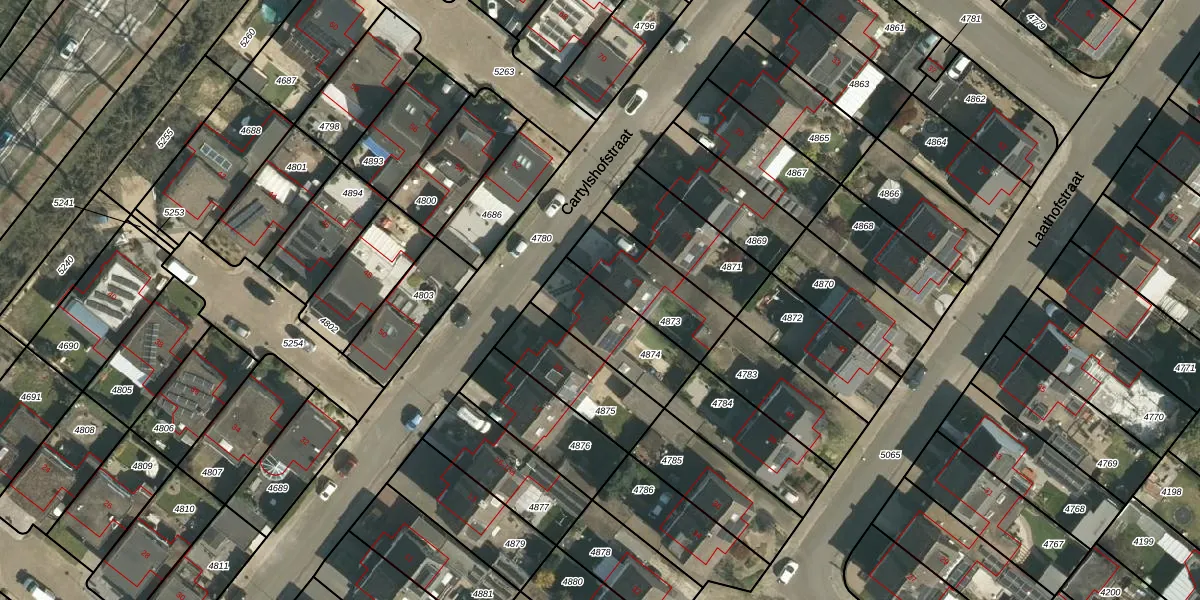 Cartylshofstraat 21 is gelegen op kadastraal perceel BEE02A4874. Deze kadastrale aanduiding is uniek en wordt gebruikt door het Kadaster om eigendomsrechten en andere zakelijke rechten vast te leggen. Het perceel maakt onderdeel uit van de kadastrale gemeente Beek.