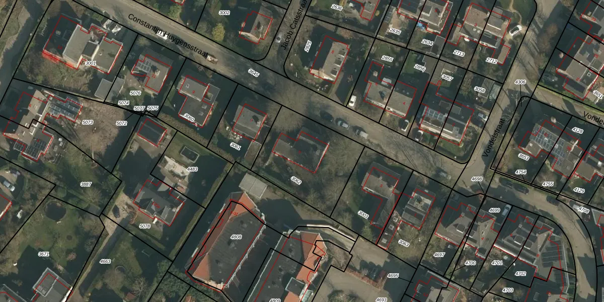 Het perceel waarop Constantijn Huygensstraat 5 staat heeft een oppervlakte van 770 m². Dit is een groot perceel. De perceeloppervlakte wordt geregistreerd door het Kadaster. Gedetailleerde informatie over de maten van dit perceel kunt u vinden in het rapport Kadastrale kaart met maatvoering van Constantijn Huygensstraat 5.