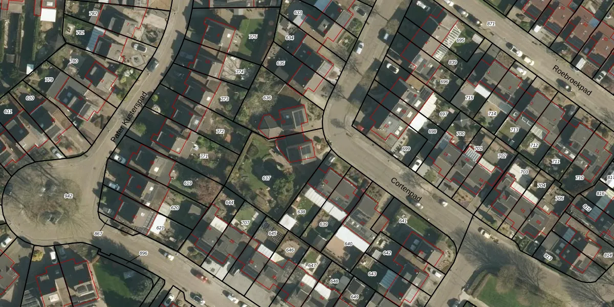 Het perceel waarop Cortenpad 21 staat heeft een oppervlakte van 615 m². Dit is een groot perceel. De perceeloppervlakte wordt geregistreerd door het Kadaster. Gedetailleerde informatie over de maten van dit perceel kunt u vinden in het rapport Kadastrale kaart met maatvoering van Cortenpad 21.